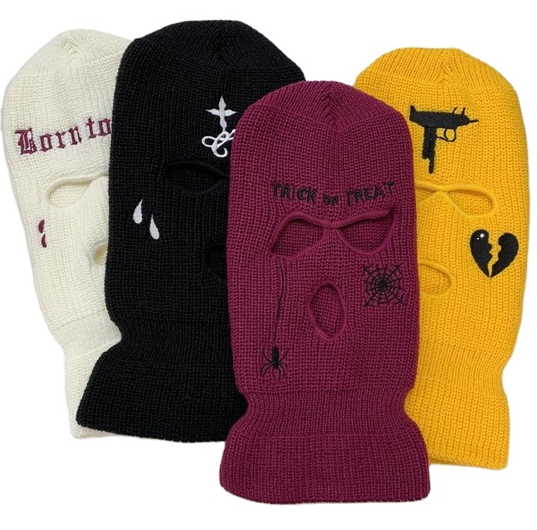 Embroidered 3 Hole Ski Mask Knitted Balaclava Snood Etsy Ski Mask Knitted Balaclava Snowboard Beanies